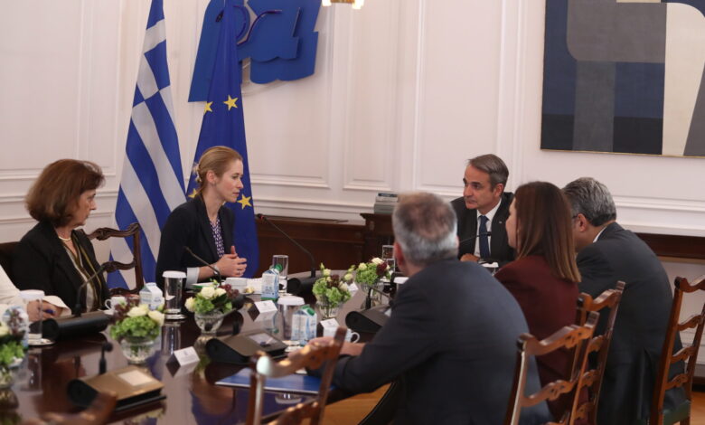 Ο Κυριάκος Μητσοτάκης υποδέχθηκε την Κάγια Κάλας στο Μέγαρο Μαξίμου – Η ΕΕ επιδιώκει να ενισχύσει τον στρατηγικό της ρόλο απέναντι στις περιφερειακές κρίσεις