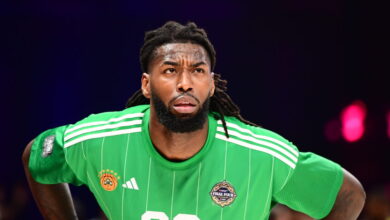 Ο Νίκος Γκάλης αγκαλιάστηκε με τον Ρίτσαρντ Σιάο πριν την έναρξη του αγώνα Άρης Betsson – Τάουερς Αμβούργου