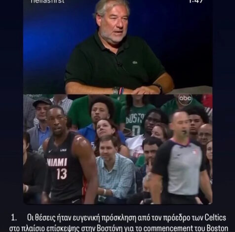 «Ο κ Μητσοτάκης όταν πήγε σε ιδιωτική επίσκεψη στη Βοστώνη, προσέξτε τώρα να δείτε άτομο, χρέωσε τον Έλληνα πολίτη με 1.000 ευρώ για διακεκριμένη θέση σε εκδήλωση του πολιτιστικού σύλλογο Κέλτες της Βοστώνης, σε αγώνα NBA του Boston Celtics.