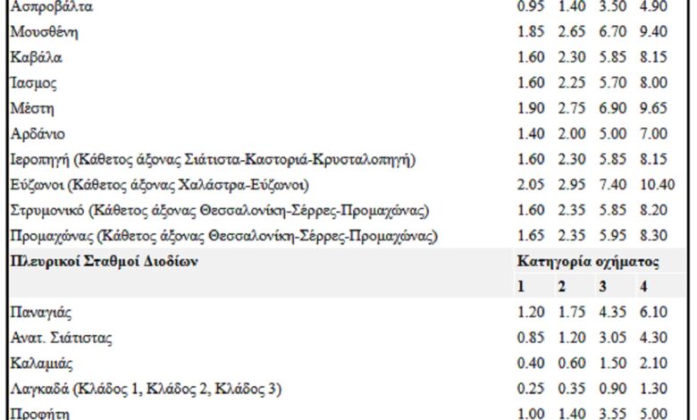 Ποιες θα είναι οι νέες τιμές διοδίων