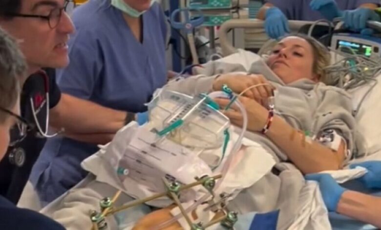 Στη λεζάντα του βίντεο με τη διακομιδή της στις ΗΠΑ όπου, όπως φαίνεται, χρειάστηκαν ειδικά μηχανήματα και ένα ειδικό ιδιωτικό τζετ, η Αμερικανίδα αθλήτρια έγραψε ότι ο τραυματισμός της ήταν «πολύ πιο σοβαρός» από ένα σπασμένο πόδι.