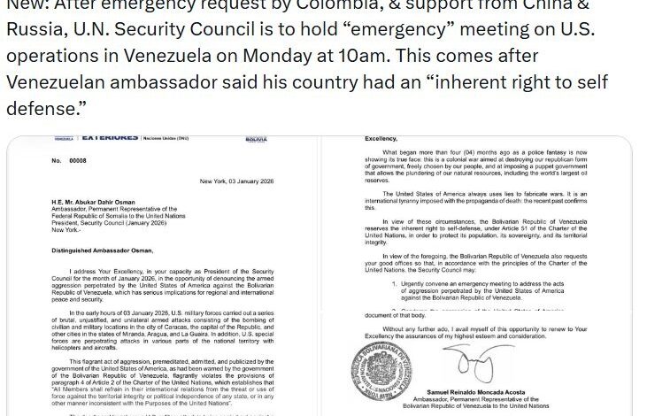 Υπενθυμίζεται πως, τόσο η μόνιμη αντιπροσωπεία της Μπολιβαριανής Δημοκρατίας της Βενεζουέλας, όσο και άλλες χώρες ζήτησαν το Σάββατο (3/1) να συνεδριάσει, μετά τη στρατιωτική επέμβαση στη Βενεζουέλα κατά τη διάρκεια της νύχτας και τη σύλληψη του προέδρου της χώρας, Νικολάς Μαδούρο, από τις αμερικανικές δυνάμεις.