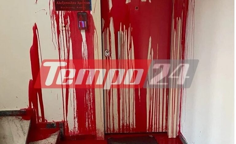 Οι κόκκινες μπογιές που έριξαν στην είσοδο του γραφείου της βουλευτού Αχαίας