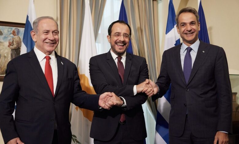 Μπέντζαμιν Νετανιάχου, Νίκος Χριστοδουλίδης και Κυριάκος Μητσοτάκης / Eurokinissi