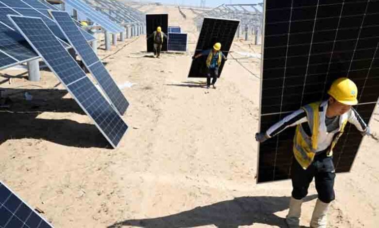 Κινέζοι εργάτες κουβαλάνε φωτοβολταϊκά
