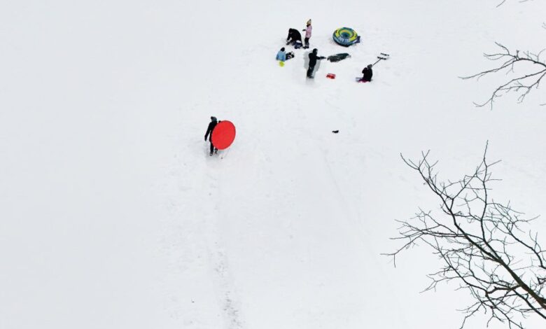 Τα παιδιά παίζουν στο χιόνι στη Νέα Υόρκη