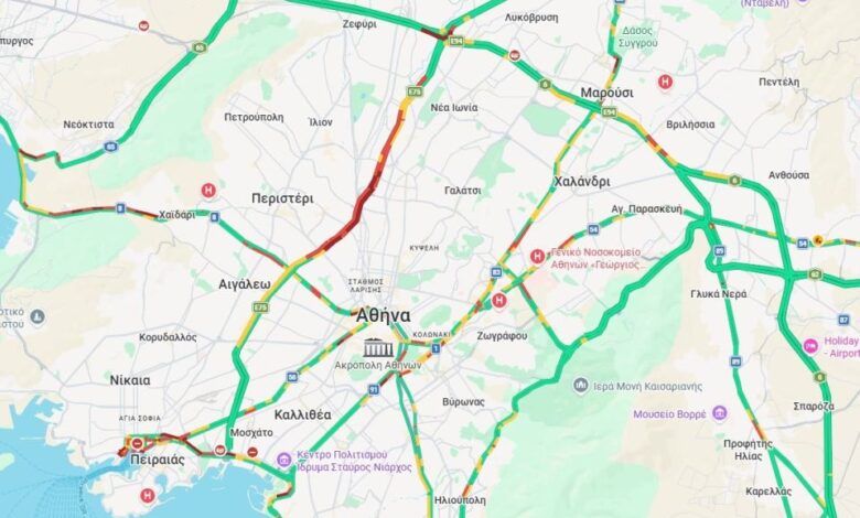 Κίνηση: Στο «κόκκινο» Κηφισός και λεωφόρος Αθηνών – Καθυστερήσεις στην Αττική Οδό