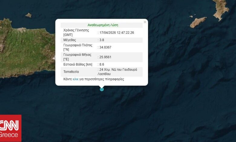 Κρήτη: Σεισμός 3,8 Ρίχτερ στη θαλάσσια περιοχή νότια του Λασιθίου