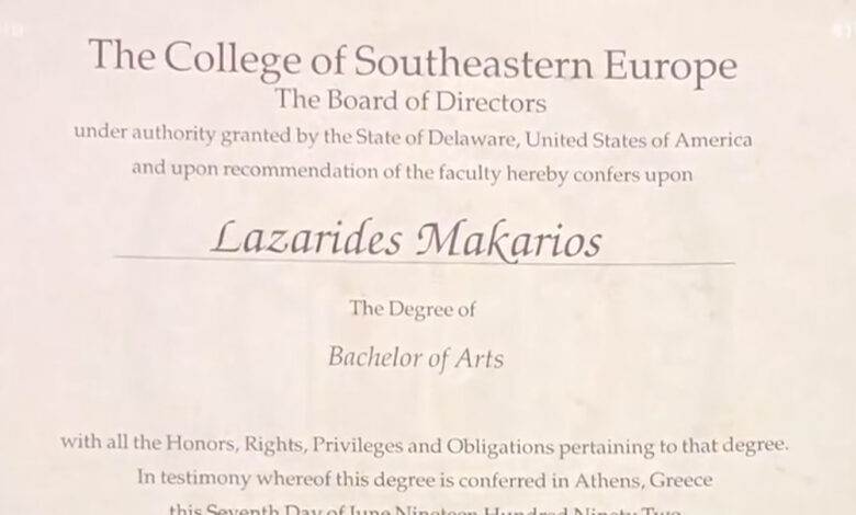 Το πτυχίο που έδειξε ο κ. Λαζαρίδης