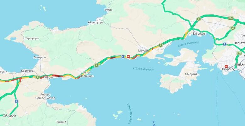 Αναλυτικά, στο ρεύμα εισόδου στην Αθηνών Κορίνθου, το μποτιλιάρισμα ξεκινά λίγο μετά το Κιάτο από όπου τα οχήματα κινούνται με χαμηλές ταχύτητες, ενώ κατά διαστήματα ακινητοποιούνται. Το πρόβλημα συνεχίζεται έως και τους Αγίους Θεοδώρους και στη συνέχεια από την Κινέτα μέχρι τη Νέα Πέραμο.