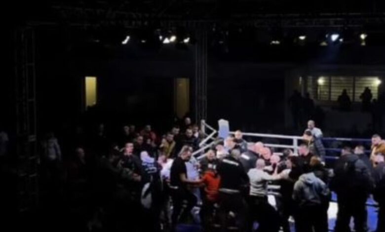 Πολύ γρήγορα η κατάσταση κλιμακώθηκε και ξέφυγε από τον έλεγχο, καθώς περίπου 50 άτομα εισέβαλαν στον αγωνιστικό χώρο, μετατρέποντας το ρινγκ σε πεδίο μάχης.