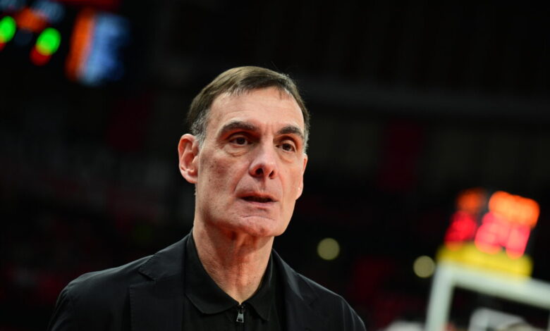 Ο Γιώργος Μπαρτζώκας στο ΣΕΦ σε παιχνίδι του Ολυμπιακού/ (KLODIAN LATO / EUROKINISSI)