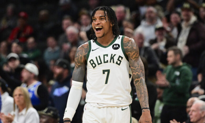 Ο Κέβιν Πόρτερ Τζούνιορ στη νίκη των Μπακς επί των Χιτ/ Mandatory Credit: Benny Sieu-Imagn Images