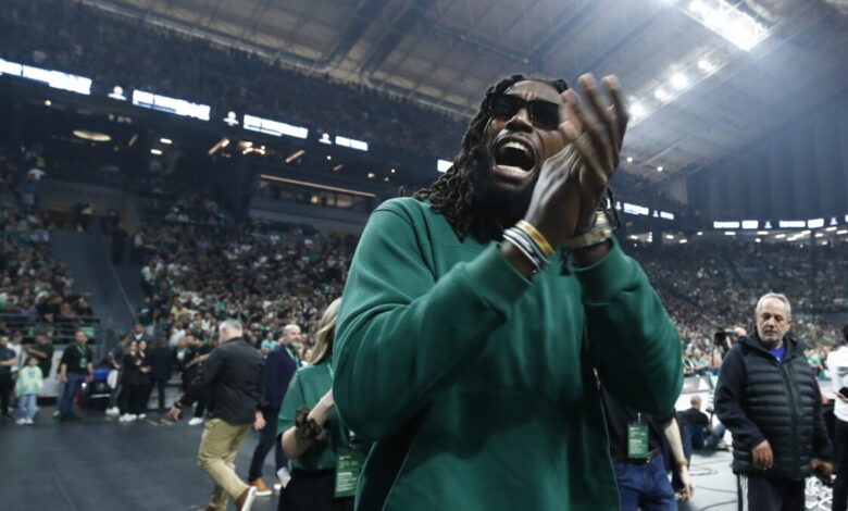 Mathias Lessort celebrated the big win with the Green fans