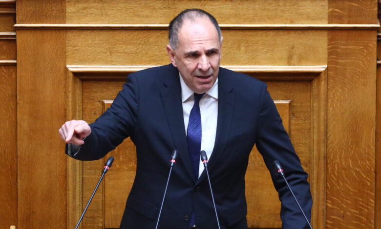 Ο υπουργός Εξωτερικών, Γιώργος Γεραπετρίτης στο βήμα της Ολομέλειας της Βουλής (Φωτογραφία αρχείου / EUROKINISSI)
