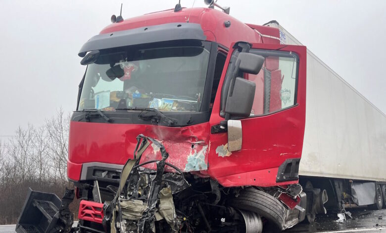 Η νταλίκα που εμπλέκεται στο τροχαίο δυστύχημα με τους επτά νεκρούς οπαδούς του ΠΑΟΚ στην Τιμισοάρα της Ρουμανίας / REUTERS