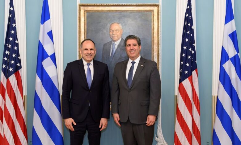Συνάντηση Γιώργου Γεραπετρίτη με τον αναπληρωτή υπουργό Εξωτερικών των ΗΠΑ, Μάικλ Ρήγας, στην Ουάσιγκτον