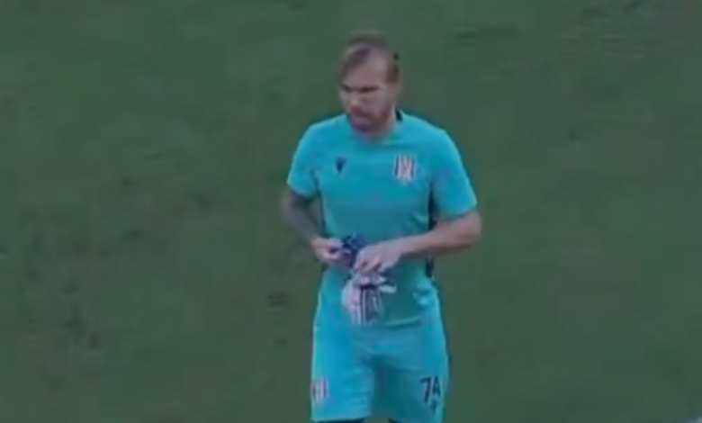 Ο διαιτητής τον τιμώρησε με κίτρινη κάρτα και ο προπονητής αναγκαστικά έκανε αλλαγή, αφού θα έμενε χωρίς τερματοφύλακα στο γήπεδο.