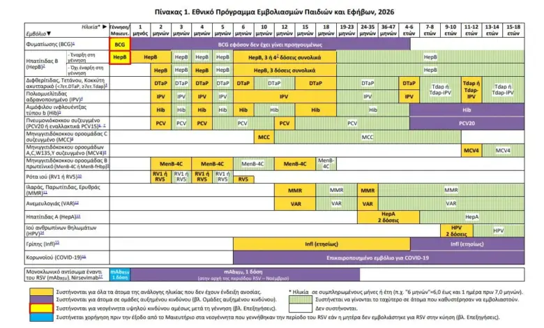 Δείτε ΕΔΩ ολόκληρο το Εθνικό Πρόγραμμα Εμβολιασμών Παιδιών και Εφήβων για το 2026