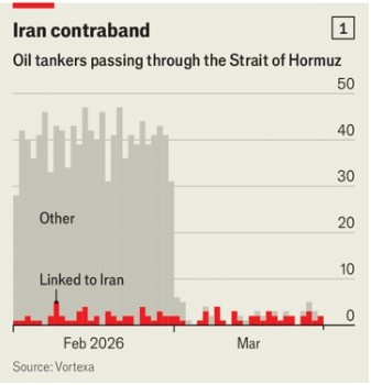 Όλα εκτός από το ένα: Καθώς τα δεξαμενόπλοιά του συνεχίζουν να διασχίζουν τα Στενά, το Ιράν κερδίζει πλέον σχεδόν διπλάσια από τις πωλήσεις πετρελαίου κάθε μέρα σε σχέση με πριν αρχίσουν να πέφτουν οι αμερικανικές και ισραηλινές βόμβες στις 28 Φεβρουαρίου.