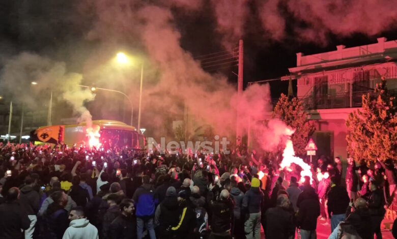 «Τρέλα» οπαδών στη Νέα Φιλαδέλφεια στην υποδοχή του πούλμαν, «να τοι οι πρωταθλητές» και καπνογόνο από τον Κοϊτά