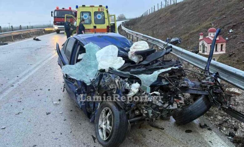 Από τη σφοδρότητα της σύγκρουσης ο οδηγός του αυτοκινήτου εγκλωβίστηκε στα συντρίμμια του οχήματός του και ανασύρθηκε χωρίς τις αισθήσεις του, όπως μεταδίδει το lamiareport.gr.