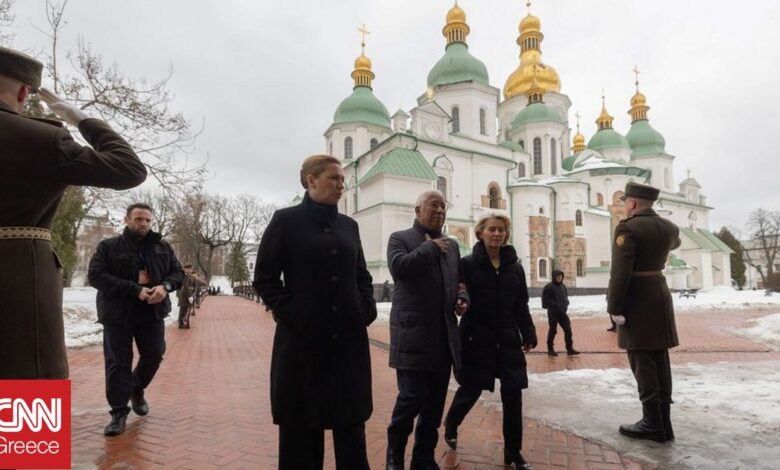 Η Ευρωπαϊκή Ένωση θα δώσει το δάνειο 90 δισεκατομμυρίων ευρώ στην Ουκρανία με τον έναν ή τον άλλον τρόπο, υποσχέθηκε την Τρίτη (24/2) από το Κίεβο η πρόεδρος της Ευρωπαϊκής Επιτροπής Ούρσουλα φον ντερ Λάιεν.