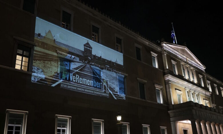 Φωταγωγήθηκε η Βουλή στη μνήμη του Ολοκαυτώματος