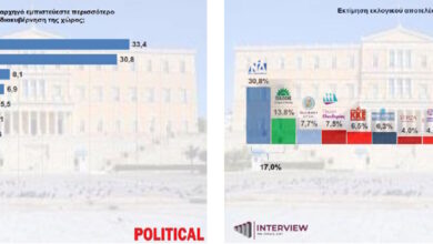 Δημοσκόπηση Interview: Στο 30,8% η ΝΔ, πάνω από 17% η διαφορά με το ΠΑΣΟΚ