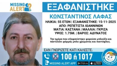 Ιωάννινα: Συναγερμός για εξαφάνιση 55χρονου – Σε πιθανό κίνδυνο η ζωή του