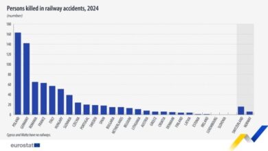 Σύμφωνα με την Eurostat (δημοσίευση 16.12.2025), οι νεκροί σε σιδηροδρομικά δυστυχήματα στην ΕΕ μειώθηκαν σε 750 το 2024, από 841…