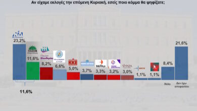 Δημοσκόπηση Interview: Πρώτη η Νέα Δημοκρατία με 23,2%